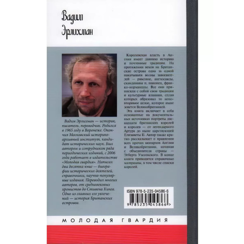 Монархи Британии. Эрлихман В. В. Королевская власть в Англии имеет давнюю историю и почтенные традиции. На протяжении веков на Британские острова волна за волной накатывали завоеватели римляне, англосаксы, скандинавы и, наконец, франко-нормандцы. Все они приносили с собой свои традиции и культурные влияния, сплав которых образовал то неповторимое целое, которое ныне зовется Великобританией. Пережив столетия внешних и внутренних войн, мятежей, переворотов и казней, британская монархия научилась находить общий язык с разными политическими силами, уважать мнение подданных всех сословий и наций. Книга историка Вадима Эрлихмана включает в себя основанные на документальных источниках портреты двенадцати британских королей и королев от легендарного Артура до ныне царствующей Елизаветы II. Автор также кратко рассказывает о правлении всех прочих монархов Англии и Великобритании, начиная с объединителя страны Эгберта Уэссекского. В конце книги приводятся справочные материалы, в том числе списки королей.