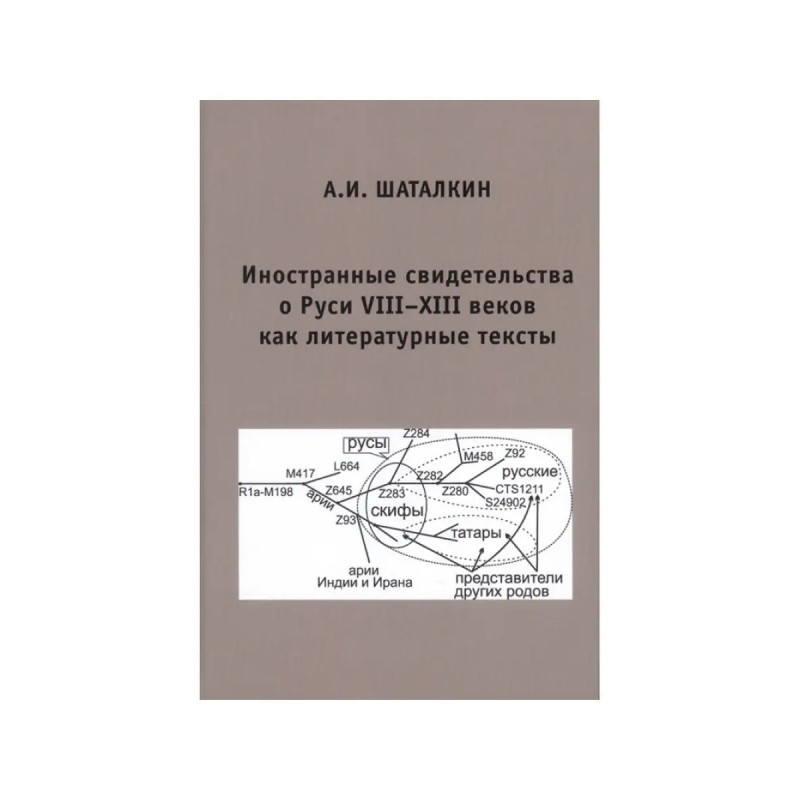 Иностранные свидетельства о Руси. Книга является продолжением первой главы ранее вышедшей монографии (Шаталкин, 2018) и посвящена родовой истории народов нашей страны. До XXI века науки о человеке не располагали методами определения родов монофилетических общностей людей, существующих во времени и связанных отношением кровного родства. В сравнительном изучении использовались горизонтальные классификации, основанные на исчислении сходств и различий людей, рассматриваемых в одно время или вне времени. Получаемые при этом выводы часто неправомерно расценивались как результаты изучения родов, описываемых через особый тип вертикальных классификаций. Обычно это связано со смешением отношений абстрактного сходства и реального родства. А это означает неправомочность полученных в этом случае выводов. Примером такого рода ошибочных заключений являются доказательства родства славян с балтийскими и германскими народами на основании их языкового сходства.