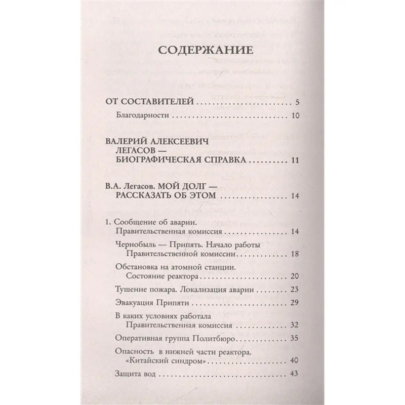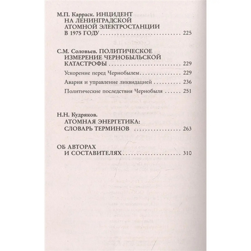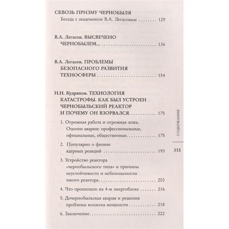 ISBN 9785171470692. Чернобыльская катастрофа произошла более 30 лет назад, но не утихают споры о её причинах, последствиях и об организации работ по ликвидации этих последствий. Чернобыль выявил множество проблем, выходящих далеко за рамки чернобыльской темы: этических, экологических, политических. Советская система в целом и даже сам технический прогресс оказались в сознании многих скомпрометированы этой аварией. Чтобы ответить на возникающие в связи с Чернобылем вопросы, необходимо знание что на самом деле произошло 26 апреля 1986 года. В основе этой книги лежат уникальные материалы: интервью, статьи и воспоминания академика Валерия Легасова, одного из руководителей ликвидации последствий Чернобыльской аварии, который первым в СССР и в мире в целом проанализировал последствия катастрофы и первым подробно рассказал о них.