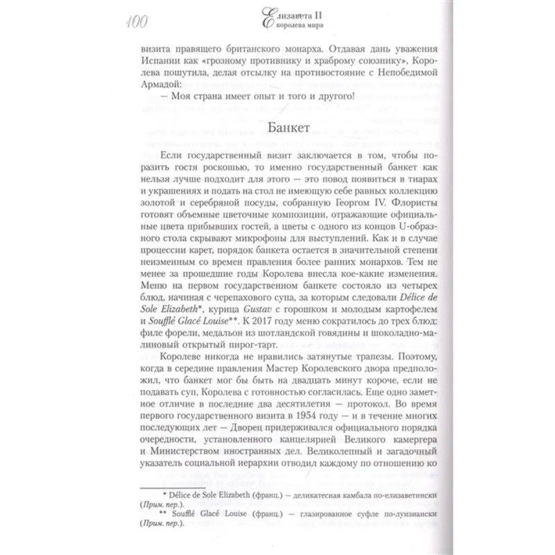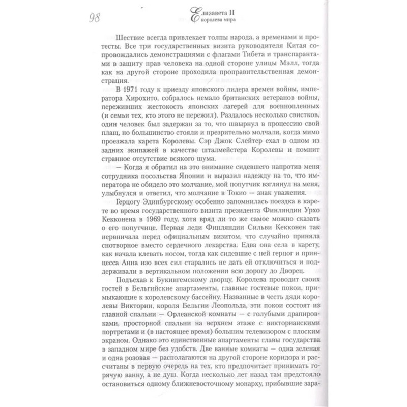 "Елизавета II. Королева мира. Монарх и государственный деятель." ISBN 9785171365370. Перед вами блистательный портрет самой известной женщины мираи рассказ о ее месте в нем от известного королевского биографаРоберта Хардмана, имеющего привилегированный доступ к королевской семье и королевскому двору. Елизавета II культовый монарх, до 20 лет ни разу не отваживавшийся побывать дальше острова Уайт, но с тех пор посетивший более 130 стран по всему миру, выполняя обязанности дипломата и государственного деятеля. За годы ее правления мировая сцена изменилась до неузнаваемости. Королева смотрит на планету и ее жителей дольше, чем любой другой глава государства, и взаимодействует с миром, как никакой другой из монархов современной истории. Ее жизнь полна драмы, интриг, экзотических и иногда опасных эпизодов, героев, мошенников, помпы и гламура, но в основе образ женщины, завоевавшей сердца всего мира.