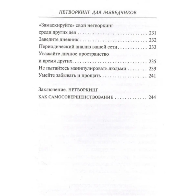 Нетворкинг для разведчиков. Как извлечь пользу из любого знакомства. Разведчики-нелегалы, много лет проработавшие под глубоким прикрытием, делятся уникальным личным опытом работы с людьми. Эта книга призвана помочь читателем стать дизайнерами их собственного человеческого окружения и успешно использовать связи для достижения целей в жизни и бизнесе. Не ставя своей задачей сделать из читателя разведчика (хотя возможно кого-то и вдохновит!), авторы книги помог научиться разбираться в людях и создавать долгосрочные продуктивные отношения. Они расскажут, как управлять собственной человеческой экосистемой, в том числе:- как стратегически строить сеть контактов;- как эффективно заводить и развивать связи;- как систематически поднимать статус в обществе;- как быстро укрепить свою позицию в новой организации;- как создать круг надежных друзей и, возможно, найти спутника или спутницу.