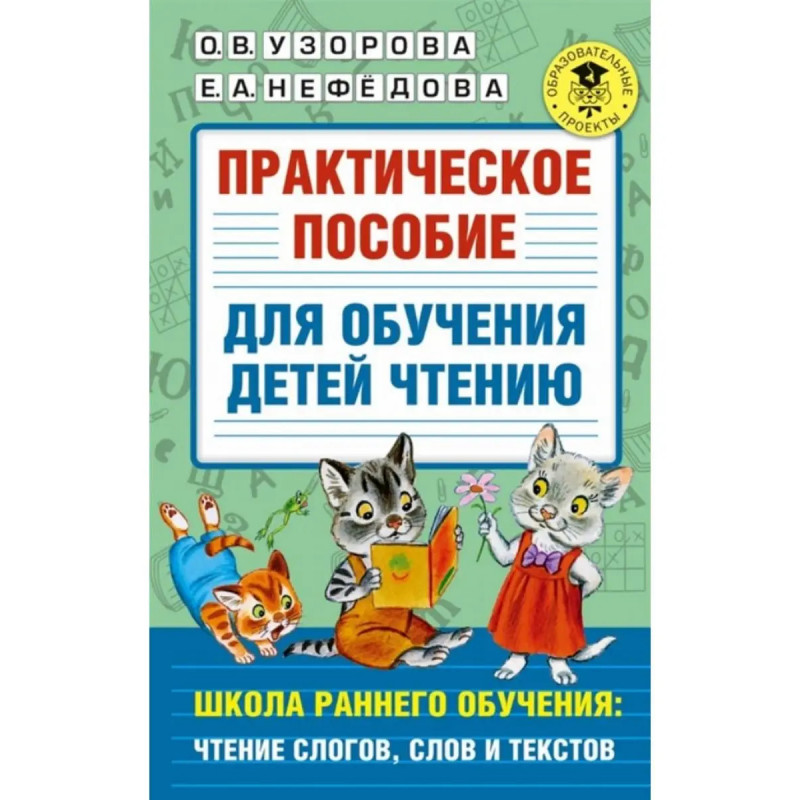 ISBN 9785-17138-0632. Практическое пособие для обучения детей чтению. Узорова О. В. В данном пособии представлен материал для обучения чтению детей от 4 до 7 лет. Предлагаемый материал составлен по системе ныне действующего Букваря. При изучении каждой буквы даётся материал для чтения слогов, слов, текстов. Это пособие может использоваться на уроках обучения грамоте в качестве дополнительного материала, а также для занятий в детском саду и дома с родителями.