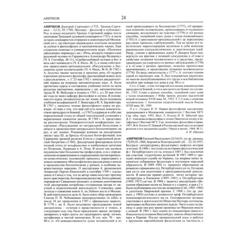 Русская философия: Энциклопедия. Третье издание энциклопедии даёт картину как истории русской философии с момента её возникновения, так и нынешнего состояния, во всём многообразии и полноте течений, школ, проблематики, взглядов и трудов представителей отечественной философской мысли. Энциклопедия насчитывает более 1000 статей, из них свыше 100 новых, которых не было в предыдущем издании. В частности, значительно расширен круг персоналий, больше внимания уделено освещению исследований русской философии за рубежом, анализу основных трудов крупнейших мыслителей России. Авторы статей энциклопедии - ведущие специалисты в области философии, этики, эстетики, социологии, политологии, психологии.Энциклопедия будет полезна как специалистам, так и тем, кто испытывает глубокий интерес к русской философии и культуре.