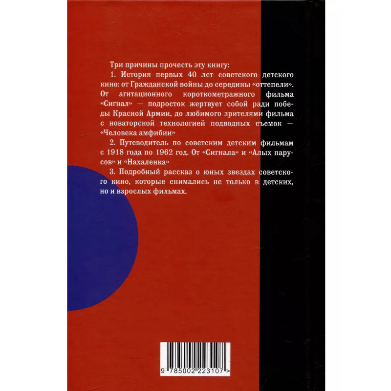 Честное пионерское! Юные звезды советского кино: 1921-1961 годы. Раззаков Ф. И. В период с 1908 по 1917 год в России было снято 23 детских фильма, но большинство из них: экранизации русских народных сказок. Первый советский короткометражный детский фильм Сигнал был снят в 1918 году и посвящен событиям Гражданской войны. Главный герой ради спасения поезда, перевозящего оружие для Красной Армии, жертвует собой. Когда в ноябре 1923 года состоялась премьера первого полнометражного детского фильма Красные дьяволята, то зрители буквально штурмовали кинотеатры. Газета Правда назвала его лучшей советской картиной. Фильм продержался в прокате весь периода немого кино. А озвученный в 1943 году снова появился на экранах, нанеся чувствительный удар по зарубежным детективным и ковбойским фильмам. Вышедший в январе 1962 года фильм Человек - амфибия только за первый год в Советском Союзе посмотрело 65 млн. зрителей. Первое место в прокате по итогам 1962 года. Впервые подробная история советского детского кино и юных звезд, что снимались в этих фильмах. Кто-то из них так и остался исполнителем одной роли, а для кого-то это было начало многолетней карьеры киноактера.