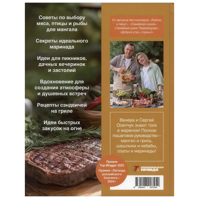 Какое блюдо объединяет людей и создает атмосферу праздника? Конечно, шашлык! Популярные кулинарные блогеры Венера и Сергей Осепчук уверены: вкус сочного мяса или рыбки, приготовленных на огне, невозможно сравнить ни с чем. Их бестселлеры Люблю и пеку, Семейная кухня, Семейная кухня. Перезагрузка, Доброе утро, страны! покорили тысячи любителей щедрых домашних застолий. Лауреат премий Top-Blogger 2023 и Легенда Российского Блогинга 2024 делится проверенными рецептами блюд на огне, которые точно захочется повторить. Более 60-ти идей от любимых народных кулинаров! В книге собраны аппетитные рецепты для пикника: от классических шашлыков до экзотических вариаций, например, хан-шашлык или куриное филе с начинкой из сыра. Вы узнаете, как мастерски выбрать мясо, подготовить мангал, сделать идеальный маринад и приготовить сочные кебабы, люля и кефте, а еще ароматный плов, дымляму, шурпу и уху. Конечно, не обошлось и без рецептов салатов из свежих и печеных овощей, грибов, закусочного хлеба. А еще оригинальные освежающие домашние напитки и пикантные соусы на любой вкус. Вы точно найдете свой фирменный рецепт для незабываемых вечеров на природе. Осталось только пригласить друзей, разжечь огонь и насладиться процессом будет жарко!Причины купить книгу:- Секрет безупречной прожарки- Руководство по мангалу и грилю- Шашлык, который всегда получается сочным- Пошаговые инструкции от выбора мяса до подачи- Простые шаги к незабываемому ужину- Традиционные рецепты с восточным акцентом- Универсальные соусы для первых и вторых блюд- Сочетания необычных ингредиентов- Быстрый и вкусный домашний фастфуд- Идеи для перекуса на природе- Уникальные рецепты из хлеба на гриле- Рецепт ароматного хлеба на мангале- Баланс специй и маринадов- Эффектные блюда для теплых вечеров- Идеальный плов на костре- Оригинальные салаты и закуски к любому блюду- 5-я книга от кулинарного блогера с миллионной аудиторией, автора бестселлеров Люблю и пеку, Семейная кухня, Семейная кухня. Перезагрузка Доброе утро,...
