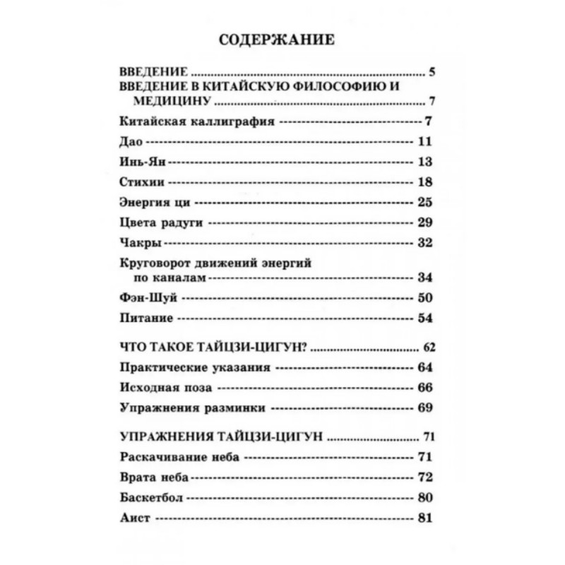 Тайцзи-цигун это одна из разновидностей цигун. Цигун китайская система гимнастики. Ци это любой тип биологической энергии, циркулирующий в живом организме, и универсальная энергетическая субстанция вселенной. Гун это работа, труд. Поэтому в узком смысле цигун это работа с энергиями тела. . Тайцзи-цигун это движения китайской гимнастики, которые стимулируют наши собственные силы, направленные на самоисцеление. В Китае такие упражнения называются упражнения омоложения. Их можно проводить дома, на природе или даже на рабочем месте. Тайцзи-цигун максимально эффективен при минимальных затратах времени, несложен в освоении и требует минимум пространства. . Книга рассчитана на широкую аудиторию.