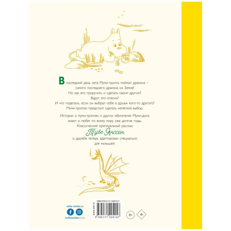 В последний день лета Муми-тролль поймал дракона - самого последнего дракона на Земле! Но как приручить его? Как сделать своим другом? Вдруг это опасно? Муми-троллю предстоит сделать нелёгкий выбор. Истории о муми-троллях и других обитателях Муми-дола знают и любят по всему миру уже долгие годы. Классический оригинальный рассказ Туве Янссон о дружбе теперь адаптирован специально для малышей.