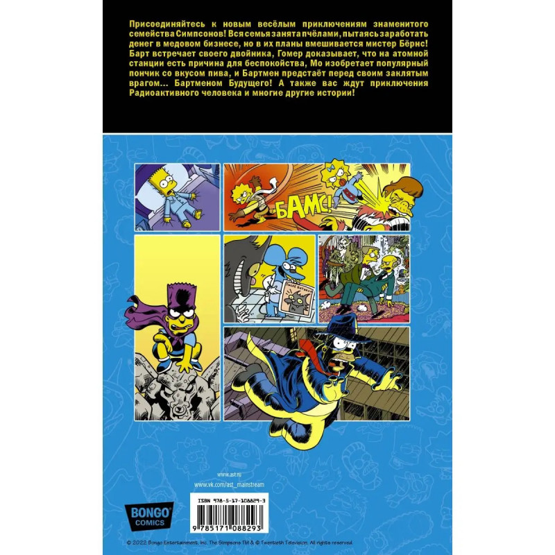 Симпсоны популярный мультсериал, признанный самым длинным в истории американского телевидения. Мультсериал выпускается с 1989-го года. На данный момент Симпсоны известны зрителям более чем из ста стран мира. А теперь одна из самых знаменитых американских семей и на страницах комиксов! В серии Симпсоны. Комиксы выходят полноценные сборники абсолютно новых коротких историй. Это антологии в твердом переплете, с глянцевыми яркими страницами. Они дополнят коллекцию любого фаната Симпсанов! Комиксы не копируют мультсериал, а дают шанс насладиться новыми абсурдными ситуациями на улицах Спрингфилда. Симпсаны - это мир, где время остановилось и фирменный юмор переплетая с знакомыми жизненными проблемами.