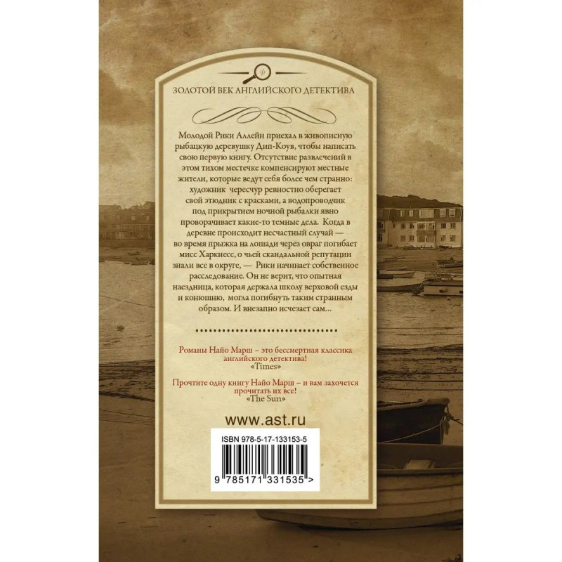 Молодой Рикки Аллейн приехал в живописную рыбацкую деревушку Дип-Коув, чтобы написать свою первую книгу. Отсутствие развлечений в этом тихом местечке компенсируют местные жители, которые ведут себя более чем странно: художник чересчур ревностно оберегает свой этюдник с красками, а водопроводчик под прикрытием ночной рыбалки явно проворачивает какие-то темные дела. Когда в деревне происходит несчастный случай во время прыжка на лошади через овраг погибает мисс Харкнесс, о чьей скандальной репутации знали все в округе, Рики начинает собственное расследование. Он не верит, что опытная наездница, которая держала школу верховой езды и конюшню, могла погибнуть таким странным образом. И внезапно исчезает сам