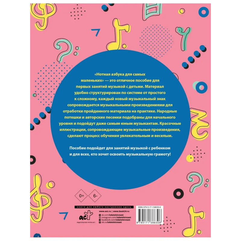 Данное издание содержит авторскую методику для занятий музыкой с детьми. Материал построен таким образом, что введение нотных знаков происходит максимально плавно это способствует более легкому и естественному освоению нотной грамоты и базовых навыков игры на фортепиано. Простые пьесы ребенок может играть в ансамбле с педагогом или с кем-то из родителей. Разделы "Учимся считать" помогут освоить счет и ритм с помощью ритмических упражнений, а разделы "Крепкие пальчики" состоят из коротких этюдов, призванных закрепить знания и навыки, а также развить силу и выносливость рук. Яркие и красочные иллюстрации, сопровождающие тексты песенок и потешек, помогут сделать процесс обучения занимательным и веселым. Издание подойдет для занятий музыкой с ребенком и всем, кто хочет приобрести начальные музыкальные знания.