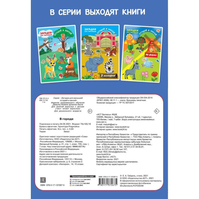 О чем эта книга Прекрасно иллюстрированная книга загадок о транспорте для любознательных малышей. Отгадывать загадки и выполнять задания в картинках любимое занятие ребят + игра для развития речи, внимания, памяти, воображения. Внимательно послушать загадку и найти на поле наклеек картинку-отгадку весело, интересно, познавательно. Кому эти книги будут интересны Весёлые загадки и задания в картинках для настоящих гонщиков и любителей авторалли. Каковы особенности этих книг С нашей книжкой ребенок выучит названия автомобильной техники. На каждой странице книги яркие, динамичные цветные рисунки. Очень интересно послушать и выучить наизусть весёлые загадки, и конечно, правильно подбирать отгадки и находит их среди наклеек. Можно устраивать викторину загадок вместе с друзьями или со взрослыми. Загадки развивают образное внимание, логическое и абстрактное мышление, память и речь малыша, а также расширяют его кругозор. С нашей книжкой разучивание загадок и поиск наклеек-отгадок превратится