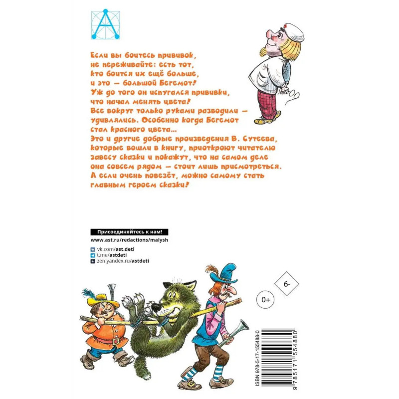 Если вы боитесь прививок, не переживайте: есть тот, кто боится их ещё больше, и это большой Бегемот! Уж до того он испугался прививки, что начал менять цвета! Все вокруг только руками разводили удивлялись. Особенно когда Бегемот стал красного цвета Это и другие добрые произведения В. Сутеева, которые вошли в книгу, приоткроют читателю завесу сказки и покажут, что на самом деле она совсем рядом стоит лишь присмотреться. А если очень повезёт, можно самому стать главным героем сказки!