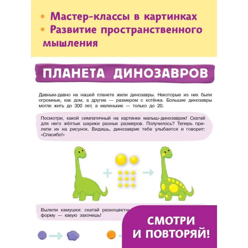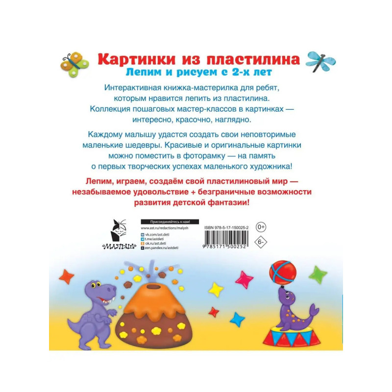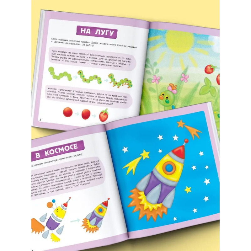 Маленький художник сможет удивить всех необычными пластилиновыми картинками, которые сделал сам! Подробно описан процесс лепки: есть пошаговая инструкция и поясняющие рисунки. Интерактивная книжка-мастерилка: можно создавать целые пластилиновые сюжеты. Дети и родители получат удовольствие от общения и результата!