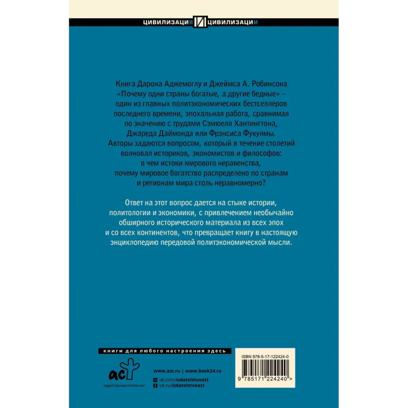 Книга Дарона Аджемоглу и Джеймса А. Робинсона "Почему одни страны богатые, а другие бедные" один из главных политэкономических бестселлеров последнего времени, эпохальная работа, сравнимая по значению с трудами Сэмюеля Хантингтона, Джареда Даймонда или Фрэнсиса Фукуямы. Авторы задаются вопросом, который в течение столетий волновал историков, экономистов и философов: в чем истоки мирового неравенства, почему мировое богатство распределено по странам и регионам мира столь неравномерно? Ответ на этот вопрос дается на стыке истории, политологии и экономики, с привлечением необычайно обширного исторического материала из всех эпох и со всех континентов, что превращает книгу в настоящую энциклопедию передовой политэкономической мысли.