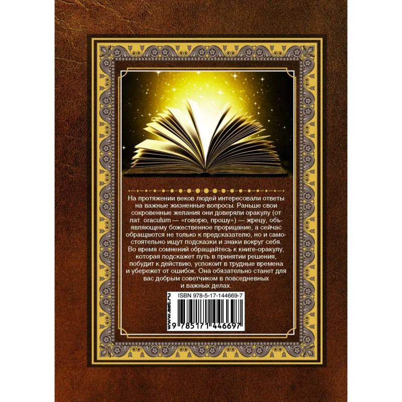 На протяжении веков людей интересовали ответы на важные жизненные вопросы. раньше свои сокровенные желания они доверяли оракулу (от лат. оraculum "говорю, прошу") жрецу, объявляющему божественное прорицание, а сейчас обращаются не только к предсказателю, но и самостоятельно ищут подсказки и знаки вокруг себя. Во время сомнений обращайтесь к книге-оракулу, которая подскажет путь в принятии решения, побудит к действию, успокоит в трудные времена и убережет от ошибок. Она обязательно станет для вас добрым советчиком в повседневных и важных делах.