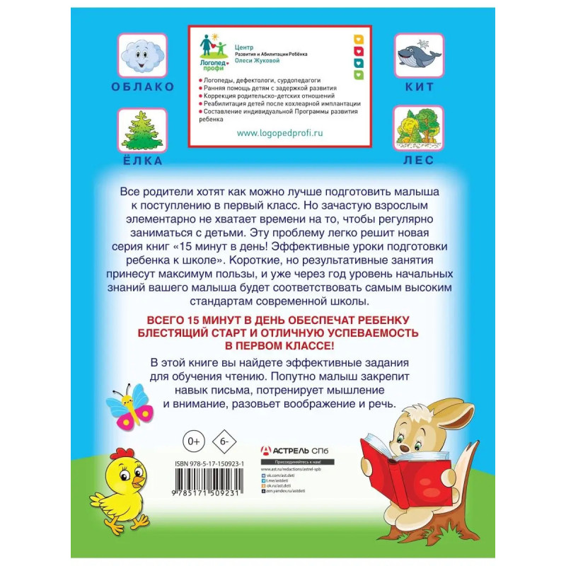 Книга подготовлена опытным логопедом-практиком специально для помощи родителям и педагогам в развитии и обучении детей дошкольного возраста. Занимаясь по этой книге всего 15 минут в день, родители смогут значительно поднять уровень подготовки ребенка к школе в течение короткого времени. Выполняя упражнения, малыш закрепит навык чтения, потренирует мышление и внимание, разовьет воображение и речь. Крупные буквы и простые задания, составленные с учетом познавательных способностей детей дошкольного возраста, облегчат ребенку освоение новых навыков, а веселые картинки превратят скучные уроки в полезную и увлекательную игру.