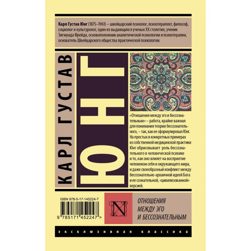 "Отношения между эго и бессознательным" работа, крайне важная для понимания теории бессознательного, так, как ее сформулировал Юнг. На простых и конкретных примерах из собственной медицинской практики Юнг обрисовывает роль бессознательного в человеческой психике, его отношения с сознательным и то, как оно влияет на восприятие человеком себя и окружающего мира, и даже своеобразный конфликт между бессознательно-архаичной идеей Бога и ее сознательной, "цивилизованной" версией.