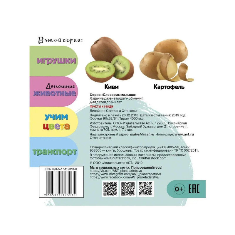 Это настоящие первые мини-словарики для самых маленьких читателей, в которых использован инновационный и ставший популярным у родителей материал EVA FOAM. Эти странички сложно порвать или испортить, ими нельзя порезаться или уколоться. Маленький формат занимает мало места, позволит взять их с собой в дорогу или в коляску на прогулку. В книге использованы реалистичные изображения: современный дизайн понравится родителям, а яркие картинки обязательно привлекут внимание малышей. В каждой книжке новая тема, можно собрать целую коллекцию словариков для самых маленьких исследователей. Книги тренируют речь, мышление, память, внимание и мелкую моторику рук. Знакомиться с этим большим миром теперь так просто и интересно!