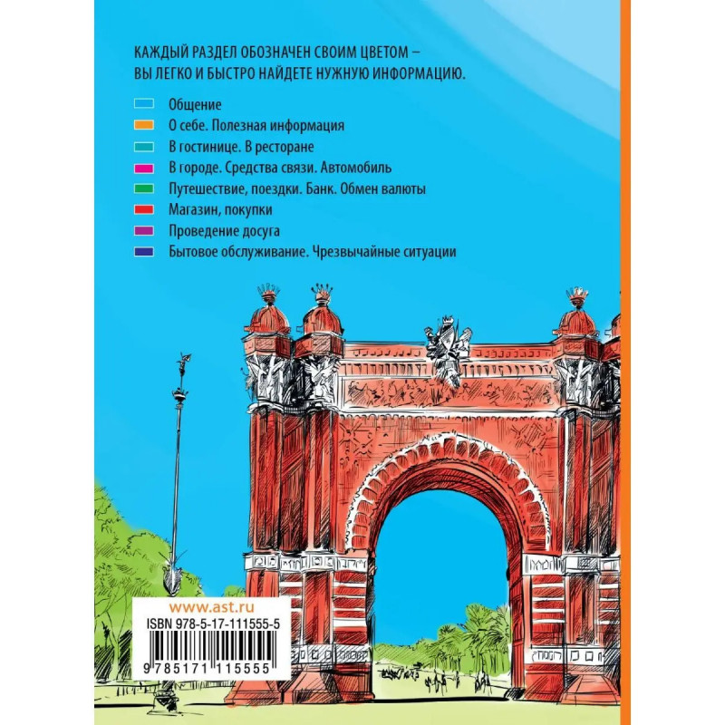 Испанский разговорник содержит самые необходимые темы и наиболее типичные модели фраз и выражений. Испанский текст снабжен практической транскрипцией, передающей звуки испанского языка средствами русской графики. Каждый раздел обозначен своим цветом вы легко и быстро найдете нужную информацию. Разговорник предназначен для всех, кто выезжает за границу и хочет иметь с собой в поездке надежного помощника.