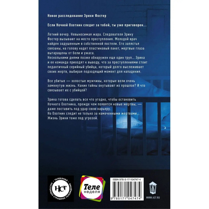 Впервые на русском! От автора бестселлера Девушка во льду. Эрика Фостер столкнется лицом к лицу с одним из самых опасных убийц в её карьере, преступником, который привык скрываться во тьме. Захватывающий атмосферный триллер в лучших традициях Ю Несбё и Полы Хокинс. Этим летом даже ночи в Лондоне аномально жаркие. Что как нельзя лучше подходит для запланированного преступления. Из тьмы влажных, удушливых сумерек чьи-то злые, жестокие глаза наблюдают за домами ничего не подозревающих людей. Неизвестный знает о своих жертвах всё: привычки, расположение комнат в доме, код сигнализации, а главное, он знает об их прошлом. Тайне, из-за которой им придется умереть. Продолжение цикла об Эрике Фостер, начатого знаменитым романом Девушка во льду. Ночной Охотник - умный, мрачный, лихорадочный полицейский триллер, полный тонких психологических наблюдений. - Марк Эдвардс Эрика быстро стала моим любимым следователем Мне страшно понравился этот захватывающий, динамичный, леденящий кровь триллер. - The Book Rev