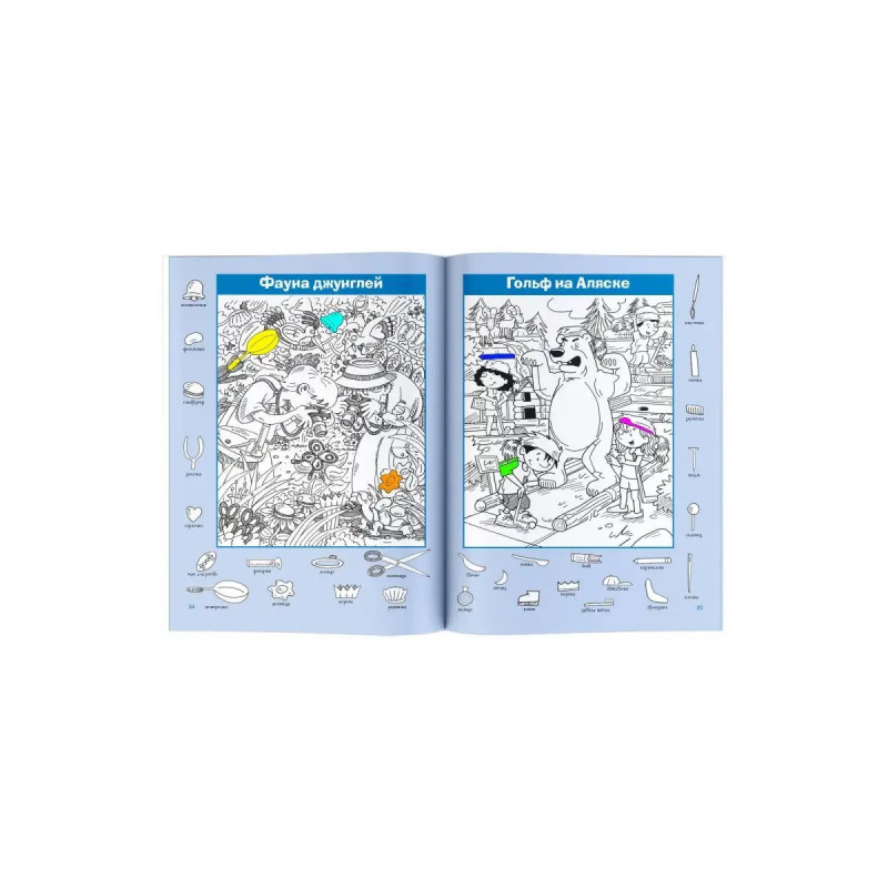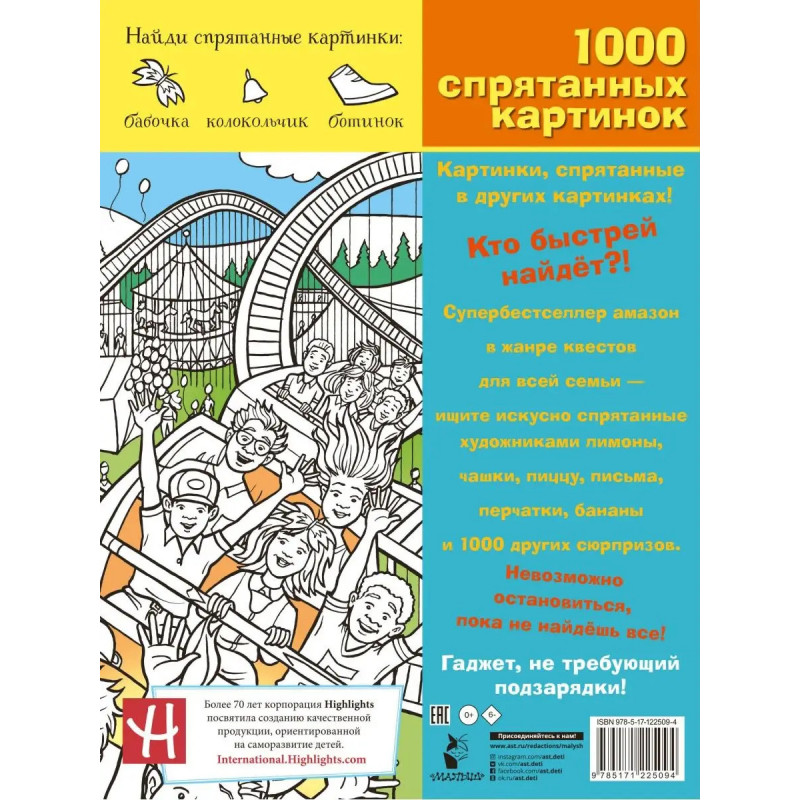 "1 спрятанных картинок" серия визуальных головоломок для всей семьи. Издательство Highlights Press лидер книжного рынка по изданию развивающих головоломок представляет свой самый популярный и абсолютно новаторский на нашем рынке жанр "Hidden Pictures" Спрятанные картинки. Это не просто выискивание спрятанных на иллюстрации предметов, а захватывающий поиск картинок, искусно встроенных художником в рисунки. Чашка в пальме, крыша-книга, нос-половник, галстук-шишка, рыбка в облаке, хот-дог на шляпе ... Картинки, спрятанные в других картинках! Невозможно остановиться, пока не найдёшь все! На ваш выбор в серии представлены любимые детьми сюжеты: - Весёлые зверята. - Транспорт. Едем летим, плывём. - Волшебный мир. - Вокруг света. Кругосветное путешествие. 5 причин купить: - Бестселлер amazon в категории "развивающие головоломки" - Неослабевающий интерес к жанру со времени его изобретения в 1946 году! - Продано более двух миллионов изданий - Увлекательное занятие для всей семьи - Жанр, развивающий вниман