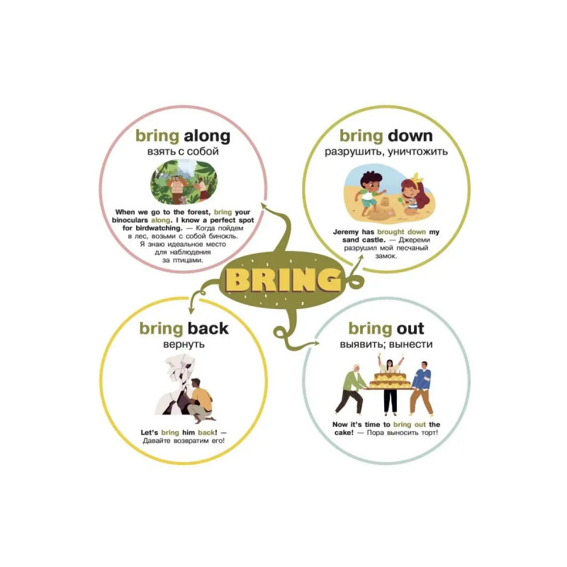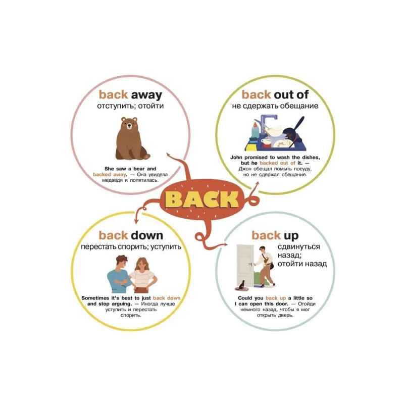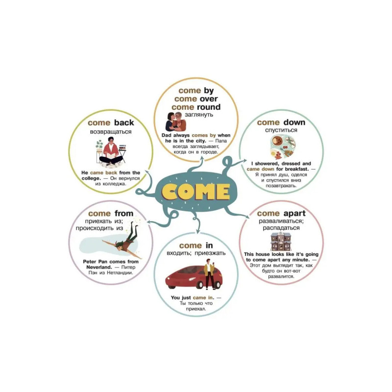 Фразовые глаголы никак не хотят come back to memory? Этот плакат-самоучитель поможет запомнить их! Он содержит все главные фразовые глаголы, часто применяемые в речи. Яркие картинки скрасят процесс заучивания, а наглядные примеры сделают его ощутимо проще. Используйте его как календарь, повесив на стену, и изучайте новые глаголы каждые несколько дней!