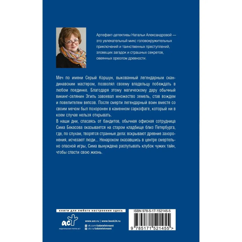 Меч по имени Серый Коршун, выкованный легендарным скандинавским мастером, позволял своему владельцу побеждать в любом поединке. Благодаря этому магическому дару обычный викинг-селянин Эгиль завоевал множество земель, став вождем и повелителем вепсов. После смерти легендарный воин вместе со своим мечом был похоронен в каменном саркофаге, который ни в коем случае нельзя открывать. В наши дни, спасаясь от бандитов, обычная офисная сотрудница Сима Бекасова оказывается на старом кладбище близ Петербурга, где, по слухам, творятся странные дела: вскрывают древние захоронения, исчезают люди... Ненароком оказавшись в центре смертельно опасной игры, Кира вынуждена распутывать клубок чужих тайн, чтобы спасти свою жизнь.