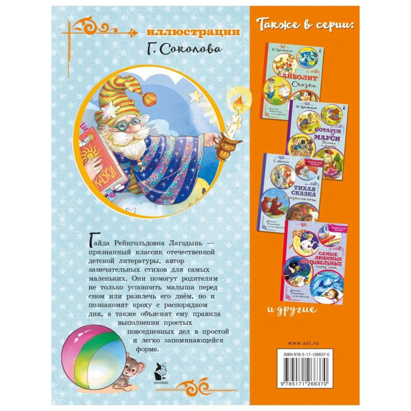 Гайда Рейнгольдовна Лагздынь признанный классик отечественной детской литературы, автор замечательных стихов для самых маленьких. Они помогут родителям не только успокоить малыша перед сном или развлечь его днём, но и познакомят кроху с распорядком дня, а также объяснят ему правила выполнения простых повседневных дел в простой и легко запоминающейся форме. Детская библиотека на все времена успешная серия, которая насчитывает свыше 4 наименований. В серию вошли только самые лучшие, проверенные временем, всенародно любимые произведения, без которых невозможно представить счастливое детство! Маленьких читателей ждут произведения классиков детской литературы русской (К. Чуковского, С. Маршака, С. Михалкова, Г. Остера, Э. Успенского, В. Сутеева, П. Бажова, В. Осеевой, В. Драгунского, В. Катаева, Б. Заходера, Е. Шварца, А. Барто, С. Прокофьевой, С. Козлова) и зарубежной (Б. Поттер, Д. Харриса, А. Крингс, Л. Миллс и Д. Нолана). На этих добрых, весёлых, поучительных историях воспитано не одно поколение де
