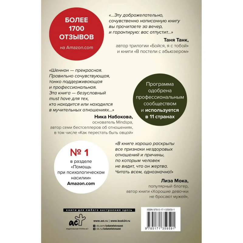 Книга Шеннон Томас Невидимые шрамы, известная также под названием Исцеление от невидимого насилия - одна из лучших книг про психологический абьюз и абьюзивные отношения. СМИ часто цитируют книгу Исцеление от невидимого насилия, потому что это одна из наиболее авторитетных и полных книг про абьюзеров и жертв абьюза. Книгу рекомендуют популярные блогеры и авторы книг про отношения: Таня Танк, Ника Набокова, Лиза Мока. Шеннон Томас - эксперт в помощи жертвам психологического абьюза разработала программу исцеления от токсичных отношений, которая признана мировым сообществом и используется в 11 странах мира. Эта книга поможет распознать манипуляции, скрытое психологическое насилие, выстроить границы в отношениях с абьюзерами, преодолеть негативные последствия токсичных отношений и защитить себя.