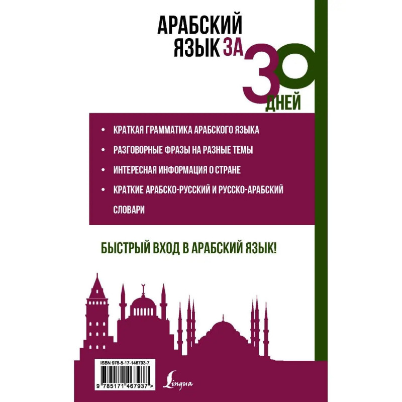 "Арабский язык за 3 дней" это отличный помощник для тех, кто хочет выучить арабский легко и быстро. Самоучитель состоит из трех частей. Краткая грамматика знакомит с особенностями арабского письма, произношения и частями речи. Разговорник содержит самые необходимые слова и фразы для свободного общения. Арабско-русский и русско-арабский словари помогут расширить словарный запас. Самоучитель будет полезен всем, кто интересуется арабским языком или начинает его изучать.