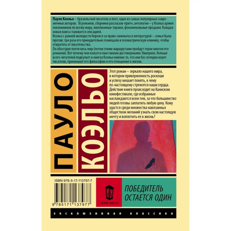 В романе "Победитель остается один" Пауло Коэльо возвращается к важным темам, поднятым в книгах "Одиннадцать минут" и "Заир". Этот роман зеркало нашего мира, в котором приверженность роскоши и успеху мешает понять, к чему по-настоящему стремятся наши сердца. Действие книги происходит на Каннском кинофестивале, где избранные наслаждаются всем тем, за что большинство людей готово заплатить любую цену. Кому удастся среди множества навязанных обществом желаний узнать свою настоящую мечту и воплотить ее в жизнь?