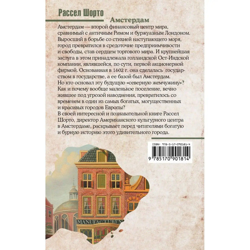 Амстердам второй финансовый центр мира, сравнимый с античным Римом и буржуазным Лондоном. Выросший в борьбе со стихией наступающего моря, город превратился в средоточие предприимчивости и свободы, став сердцем торгового мира. И крупнейшая заслуга в этом принадлежала голландской Ост- Индской компании, являвшейся по сути первой акционерной фирмой. Основанная в 162 г. она сделалась государством в государстве, а ее базой был Амстердам. Но кто основал эту будущую "северную жемчужину"? Как и почему вообще маленькое поселение, вечно жившее под угрозой наводнения, превратилось со временем в один из самых богатых, могущественных и красивых городов Европы? В своей интересной и познавательной книге Рассел Шорто, директор Американского культурного центра в Амстердаме, раскрывает перед читателями богатую и бурную историю этого удивительного города.
