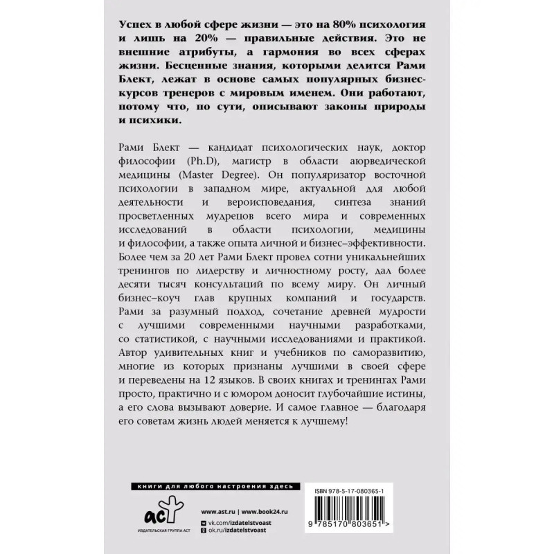 Рами Блект пишет просто, доступно и легко. А главное с любовью. Все его советы просты и доступны, их легко применять изо дня в день. Попробуйте и убедитесь сами! Быть счастливым просто!