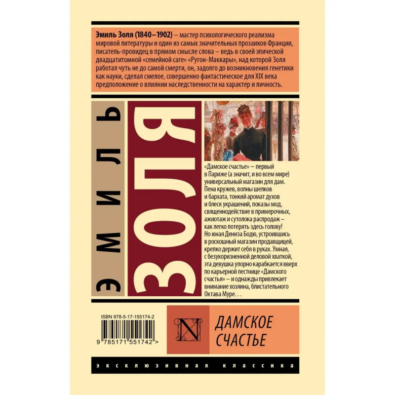 "Дамское счастье" первый в Париже (а значит, и во всем мире) универсальный магазин для дам. Пена кружев, волны шелков и бархата, тонкий аромат духов и блеск украшений, показы мод, священнодействие в примерочных, ажиотаж и сутолока распродаж, как легко потерять здесь голову! Но юная Дениза Бодю, устроившись в роскошный магазин продавщицей, крепко держит себя в руках. Умная, с безукоризненной деловой хваткой, эта девушка упорно карабкается вверх по карьерной лестнице "Дамского счастья", и однажды привлекает внимание хозяина, блистательного Октава Муре