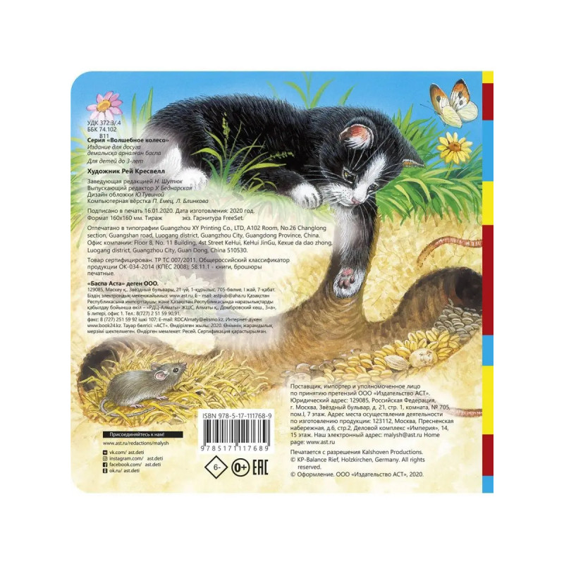 Эти небольшие яркие книжки-картонки настоящий кладезь информации для самых маленьких читателей (и даже для родителей)! Кого только нет на страницах этой серии и барсуки, и ежи, и улитки, и морские свинки. Ну а сможете ли вы отличить крапивника от жаворонка, знаете как выглядит птичка поганка? Всё благодаря волшебному колесу, которое есть на каждой странице этой чудесной книги, а также на обложке, и на котором поместилось много разных зверей и птиц: каждая страница новая загадка и новые открытия! Наши главные герои, играючи, проведут вас по всем уголкам леса или фермы, познакомят со всеми обитателями пруда и сада. Иллюстрации были созданы когда-то давно английским художником Реем Кресвеллом с большой любовью ко всему живому и обязательно привлекут внимание ребенка своей яркостью и детальной прорисовкой. Так много открытий за каждым поворотом колеса! плотный картон с вырубкой и колесиком на каждой полосе, включая обложку; красочные и детальные иллюстрации помогут погрузиться в мир природы, узнать