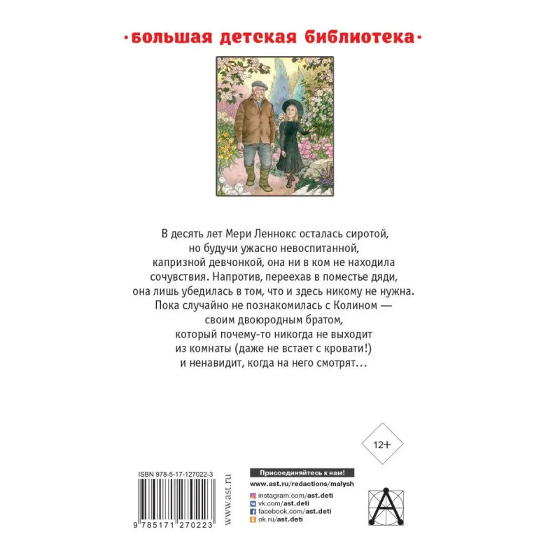 Фрэнсис Бёрнетт (18491924) англо-американская писательница, автор повестей и романов, переведенных на разные языки мира. Фрэнсис Бёрнетт рано потеряла отца, а в восемнадцать лет и мать. Возможно, поэтому в ее книгах так ясно звучит тема сиротства, одиночества и недостатка любви. Однако, несмотря на все невзгоды, герои Фрэнсис Бёрнетт в конечном итоге обретают истинное счастье, любящую семью и преданных друзей. В нашу книгу вошли наиболее известные произведения писательницы "Таинственный сад" и "Маленький лорд Фаунтлерой". Для среднего школьного возраста.