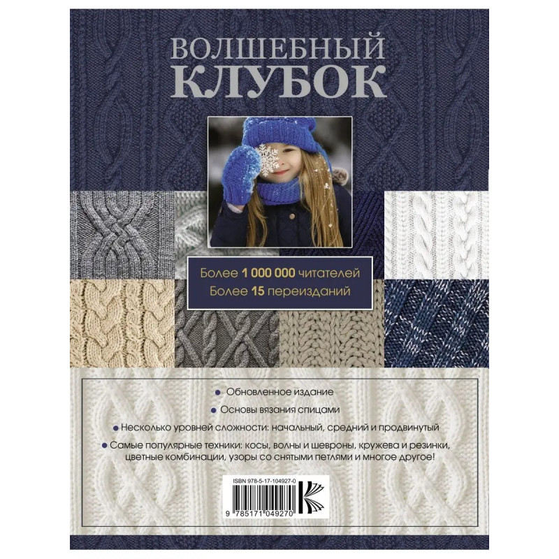 Красивые вязаные вещи начинаются с правильно подобранного узора. В этом незаменимым помощником станет для вас обновленное издание Волшебного клубка! Все узоры содержат описание и схемы, поделены на три уровня сложности: начальный, средний и продвинутый. В книге вы найдете самые популярные техники: косы и араны, волны и шевроны, кружева и ажурные узоры, резинки, цветные комбинации, узоры со снятыми петлями и многое другое. Такая книга станет прекрасным подарком вязальщице! Побалуйте себя новыми идеями и узорами для вязания!
