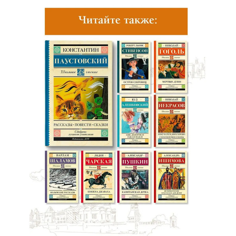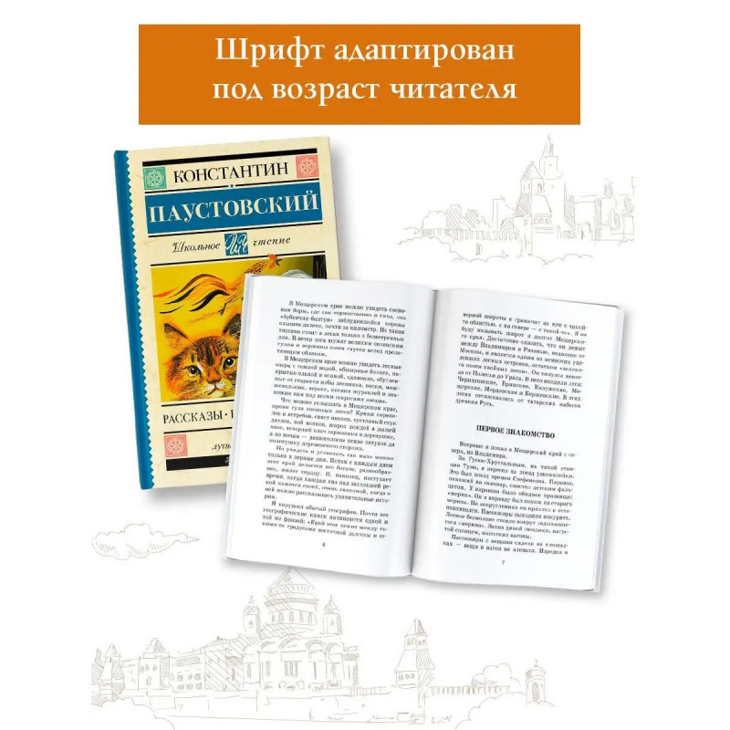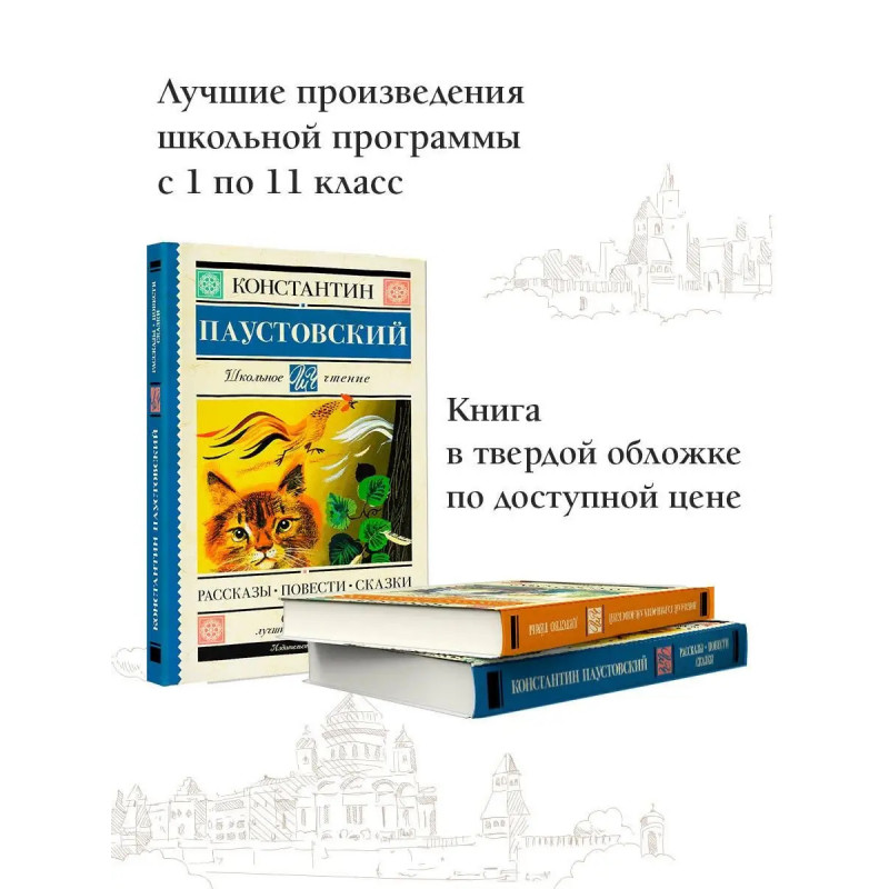 Лучшие произведения Константина Паустовского, знаменитого русского писателя, под одной обложкой! В этот сборник для школьного чтения вошли повесть "Мещёрская сторона", рассказы и сказки разных лет. Эти истории легко читаются, знакомят ребят с лучшей классикой, увлекают с первых страниц. В серию включены лучшие произведения отечественной и зарубежной литературы, входящие в школьную программу с 1 по 11 класс и в списки дошкольного чтения. Книги в твердом переплёте сделают знакомство с литературой легким и увлекательным. Серия, которая не ударит по семейному бюджету и поможет юному читателю расти нравственно и интеллектуально!