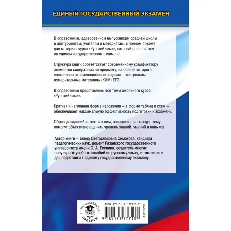 Справочник предназначен для подготовки выпускников средней школы к единому государственному экзамену (ЕГЭ) по русскому языку. Издание содержит теоретический материал по всем разделам школьного курса русского языка в 6-11 классах, рекомендации для выполнения заданий частей всех типов частей 1 и 2 экзаменационной работы. Практическая часть включает образцы тестовых заданий, приближённых по объёму, структуре и отобранному материалу к контрольным измерительным материалам единого государственного экзамена. В конце пособия приведены ответы к тестовым заданиям.