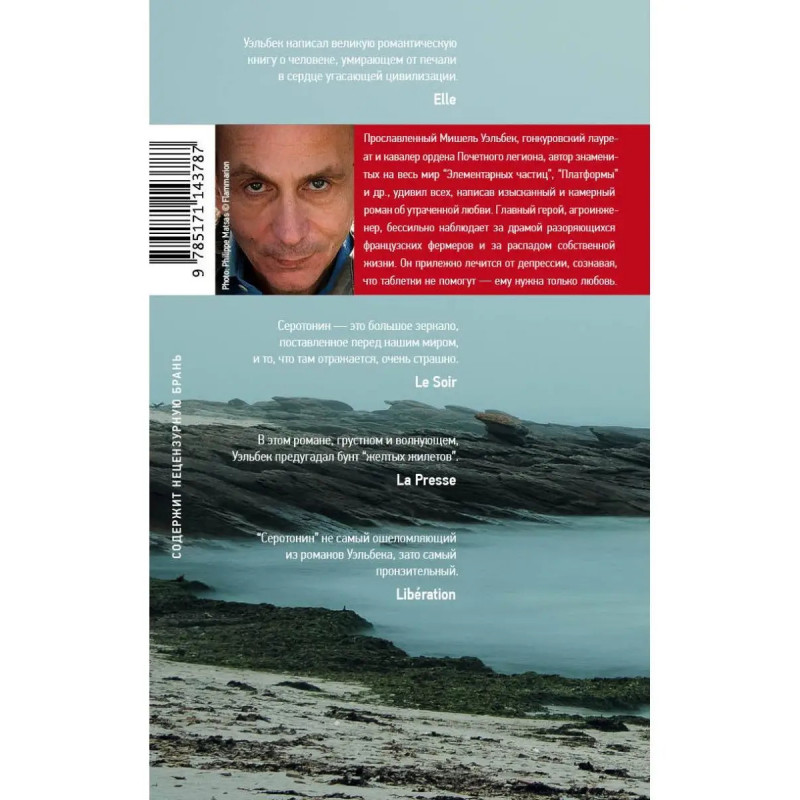 Новый роман легендарного французского писателя, лауреата Гонкуровской премии и премии Ноябрь, автора бестселлеров Элементарные частицы, Карта и территория, Покорность. В мире искусственно всё. Даже счастье. Особенно счастье. Главный герой нового романа Уэльбека терпит фиаско и в работе, и в любви. Министерство сельского хозяйства Франции, в котором работает сорокашестилетний Флоран-Клод Лабруст, не может уберечь французских фермеров от разрушительного дыхания глобализации, а отношения с японкой Юдзи, некогда пылавшие безумством страсти, остыли окончательно, не оставив ни одного тлеющего уголька. Герой чахнет, и весь старый мир чахнет вместе с ним. Единственное спасение новый антидепрессант капторикс, искусственно поднимающий в крови уровень гормона счастья серотонина. В отчаянной попытке спастись герой решает уехать в небольшую нормандскую деревушку, но даже и там оказывается невозможно найти уголок, не затронутый распадом. Мир вокруг Лабруста гибнет, и он вместе с ним. В Серотонине буквально фи