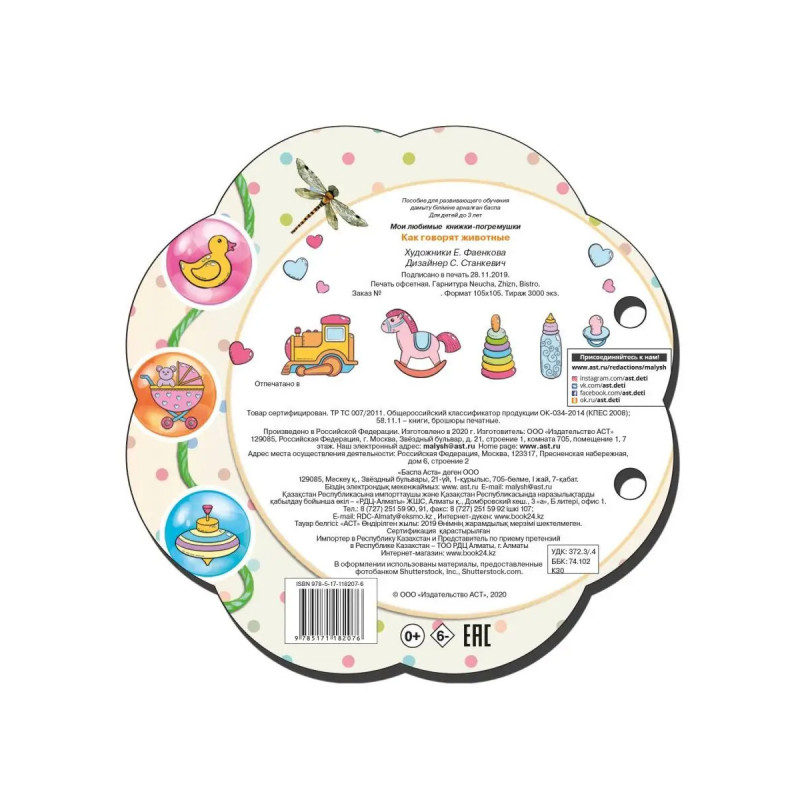 Самые любимые с детства стихи - теперь в новой популярной форме с большой и удобной погремушкой! В каждой книге: - 12 страниц известных стихов: С. Маршака, А.Барто или развивающими картинками про животных ; - ставшая популярной игровая форма с фигурной вырубкой; - большой разноцветный шарик-погремушка на шнурке, сделанный из безопасных для здоровья ребенка материалов; - легкий и прочный картон; - яркие иллюстрации известных художников и современный дизайн; - комплексное развитие интеллекта ребенка с самых первых дней.