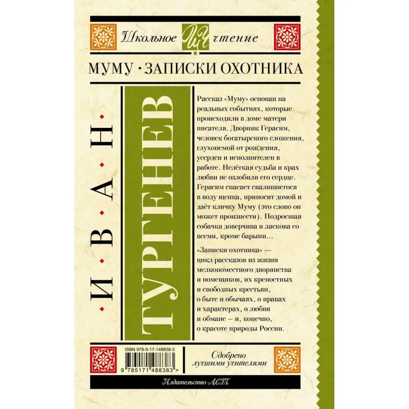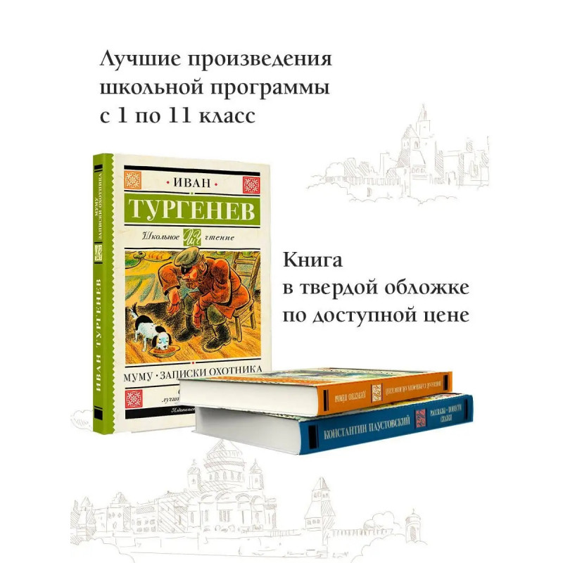 Путешествие в прошлое России вместе с Иваном Тургеневым! В этот сборник вошли два известнейших произведения Ивана Сергеевича Тургенева Муму и Записки охотника. Они недаром включены в школьную программу. Писатель мастерски раскрывает в них характеры, нравы, привычки и быт местного дворянства и мелких помещиков. Бесправие крестьян, несправедливость и сумасбродные барские капризы, нелегкие судьбы и сложные решения все это переплетено в рассказах Тургенева с любовью к России во всех ее проявлениях. Книга поможет ребенку лучше понять противоречивость человеческой натуры, задаться вопросом, что есть добро и зло, и сформировать моральные основы собственной личности. В серию Классика для школьников включены лучшие произведения отечественной и зарубежной литературы, входящие в школьную программу с 1 по 11 класс и в списки дошкольного чтения. Книги в твердом переплете сделают знакомство с литературой легким и увлекательным. Серия, которая не ударит по семейному бюджету и поможет юному читателю расти нрав