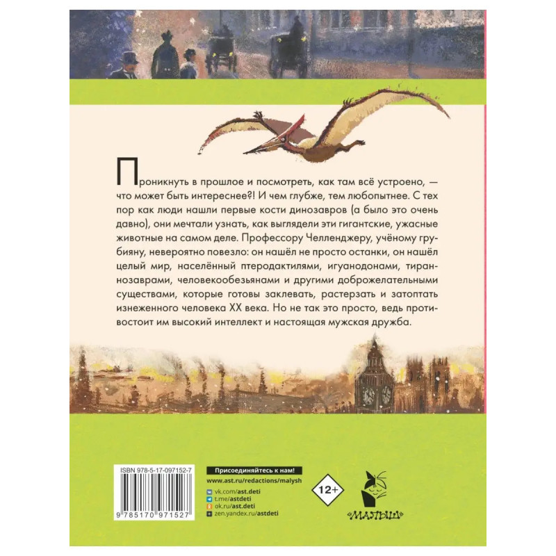 Автор знаменитых рассказов и романов о Шерлоке Холмсе сэр Артур Конан Дойл писал невероятно интересные произведения в жанре научной фантастики. "Маракотова бездна", "Отравленный пояс", "Открытие Рафлза Хоу" и, конечно же, "Затерянный мир"! Повесть написана от имени репортера ежедневной лондонской газеты, но главным ее героем является эксцентричный, обладающий бешеным темпераментом и мощным интеллектом профессор Челленджер. Именно он собирает экспедицию в дебри Южной Америки в поисках земли, на которой сохранилась флора и фауна юрского периода. Ужасные твари населяют этот мир хищные динозавры, человекообезьяны, ядовитые насекомые. Сможет ли человек ХХ века противостоять им? Загадочные и подробные рисунки к повести сделала молодая художница Валерия Неручева. Для среднего школьного возраста.