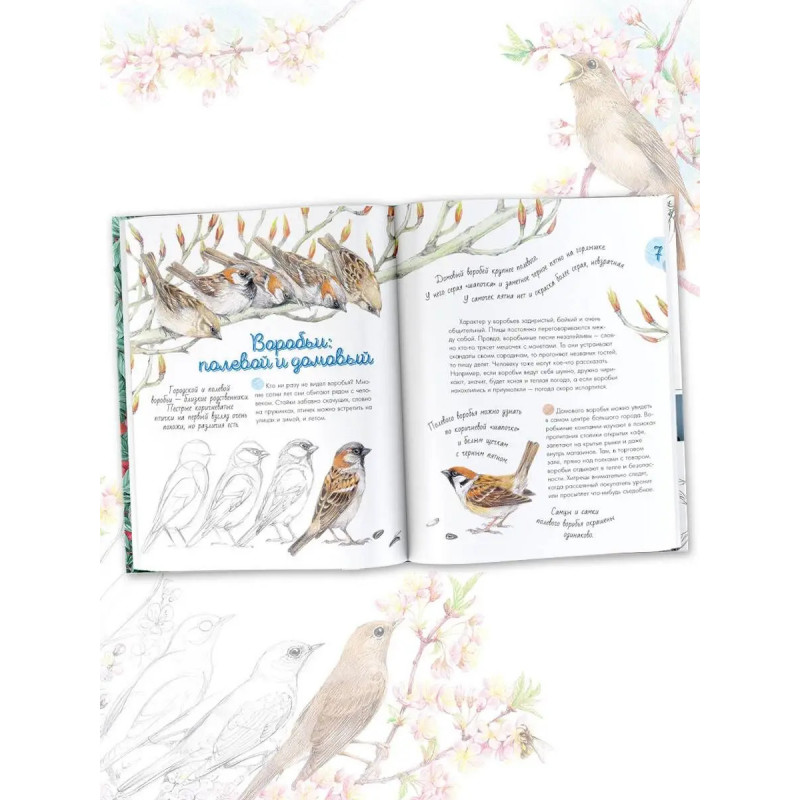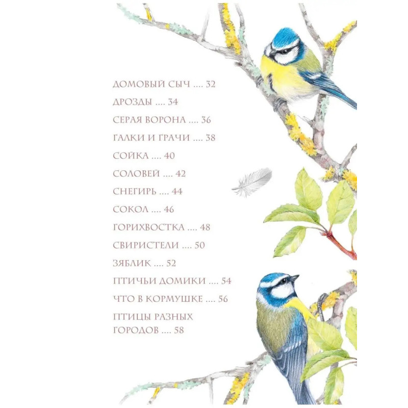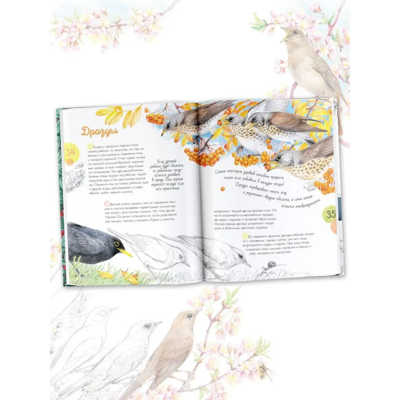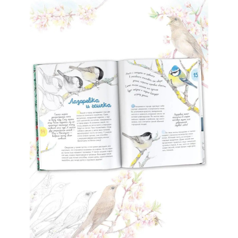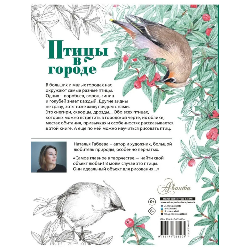 Уникальная книга о самых разных птицах в невероятном оформлении! В больших и малых городах нас окружают птицы. Одних воробьев, ворон, синиц и голубей знает каждый. Другие видны не сразу, хотя тоже живут рядом с нами. Это снегири, скворцы, дрозды... Обо всех птицах, которых можно встретить в городской черте, их облике, местах обитания и особенностях рассказывается в этой книге с фантастически нежными иллюстрациями. Вместе с автором и художником Натальей Габеевой читатель разберётся во всём птичьем многоорбразии, узнает привычки каждой птички и даже научится ей рисовать! Это издание расширяет кругозор, развивает бережное и внимательное отношение к природе, раскрывает творческие способности и будет интересно даже взрослым. Откройте для себя волшебство щебечущего и чирикающего мира!