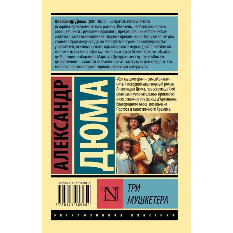 "Три мушкетера" самый знаменитый историко-авантюрный роман Александра Дюма, повествующий об опасных и увлекательных приключениях отважного гасконца дАртаньяна, благородного Атоса, весельчака Портоса и таинственного Арамиса.