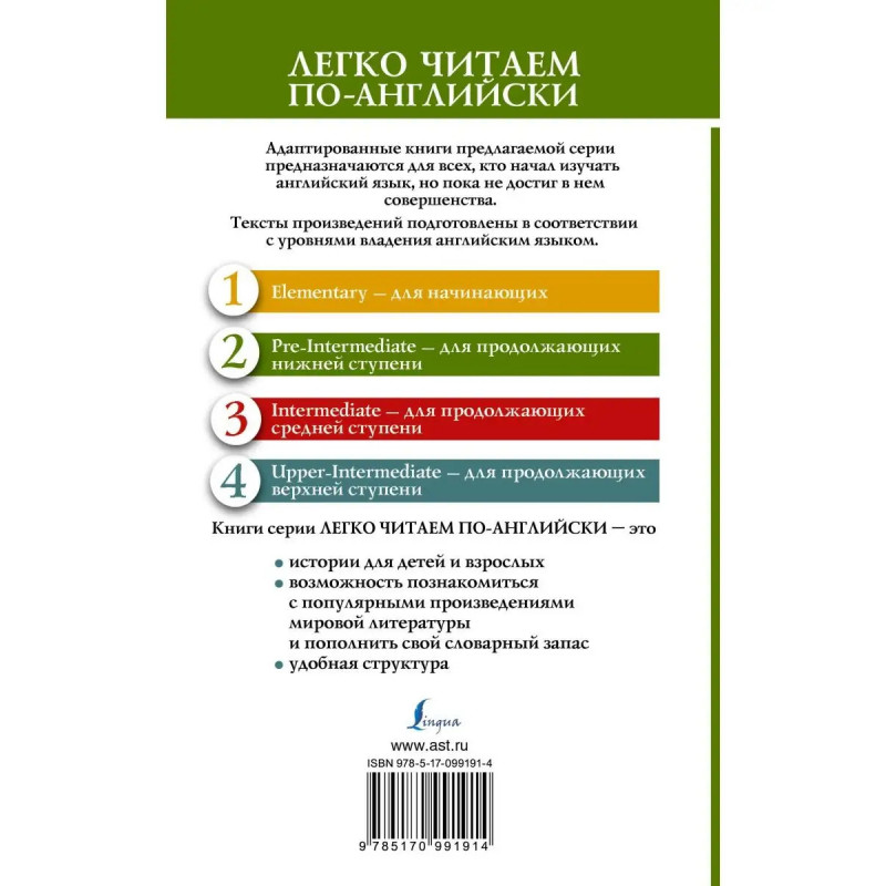 Предлагаем вашему вниманию книги серии Легко читаем по-английски. Наши увлекательные адаптированные книги на английском языке содержат комментарии, упражнения на проверку понимания прочитанного, а также небольшой словарь. В серии Легко читаем по-английски вы найдете лучшую классику на английском языке, сможете познакомиться с популярными произведениями мировой литературы на языке оригинала. В книгу вошел адаптированный и сокращенный текст романа Марка Твена Приключения Тома Сойера. Предназначается для продолжающих изучать английский язык (уровень владения языком - Pre-Intermediate). Книга также содержит комментарии, словарь и упражнения.