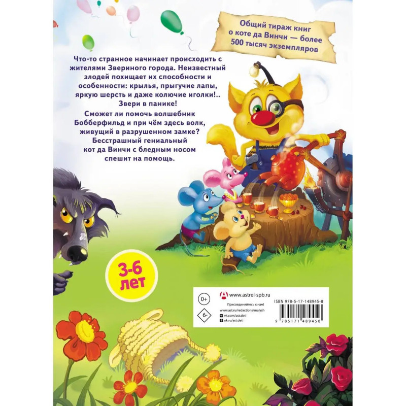 Суммарный тираж книг автора более 4 млн экземпляров. Книги Кати Матюшкиной издаются в России, Китае, Украине, Болгарии и Латвии. Представляем адаптированную версию для малышей 3-6 лет пятой книги самого популярного цикла Кати Матюшкиной Кот да Винчи. Читателей ждут волшебство, необыкновенные приключения и таинственный обитатель разрушенного замка. Красочные и милые иллюстрации Нины Коровиной. Идеальная история для семейного чтения.