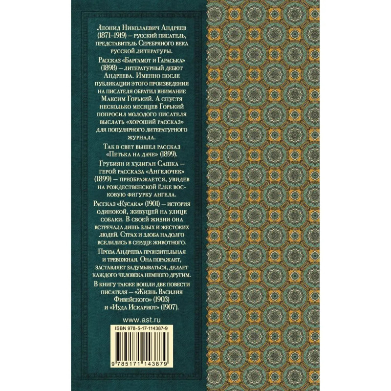 Леонид Николаевич Андреев (18711919) русский писатель, представитель Серебряного века русской литературы. Рассказ Баргамот и Гараська (1898) литературный дебют Андреева. Именно после публикации этого произведения на писателя обратил внимание Максим Горький. А спустя несколько месяцев Горький попросил молодого писателя выслать хороший рассказ для популярного литературного журнала. Так в свет вышел рассказ Л. Андреева Петька на даче (1899). Тяжелая жизнь маленького Петьки, помощника парикмах.еpа, невероятным образом изменилась, когда он попал на господскую дачу в Царицыно. Грубиян и хулиган Сашка герой рассказа Ангелочек (1899) преображается, увидев на Рождественской ёлке восковую фигурку ангела. Позже, впечатлённый этим рассказом, А. Блок напишет стихотворение Сусальный ангел. Рассказ Кусака (191) история одинокой, живущей на улице собаки. В своей жизни она встречала лишь злых и жестоких людей. Страх и злоба надолго вселились в сердце животного. Проза Андреева пронзительная и тревожная. О