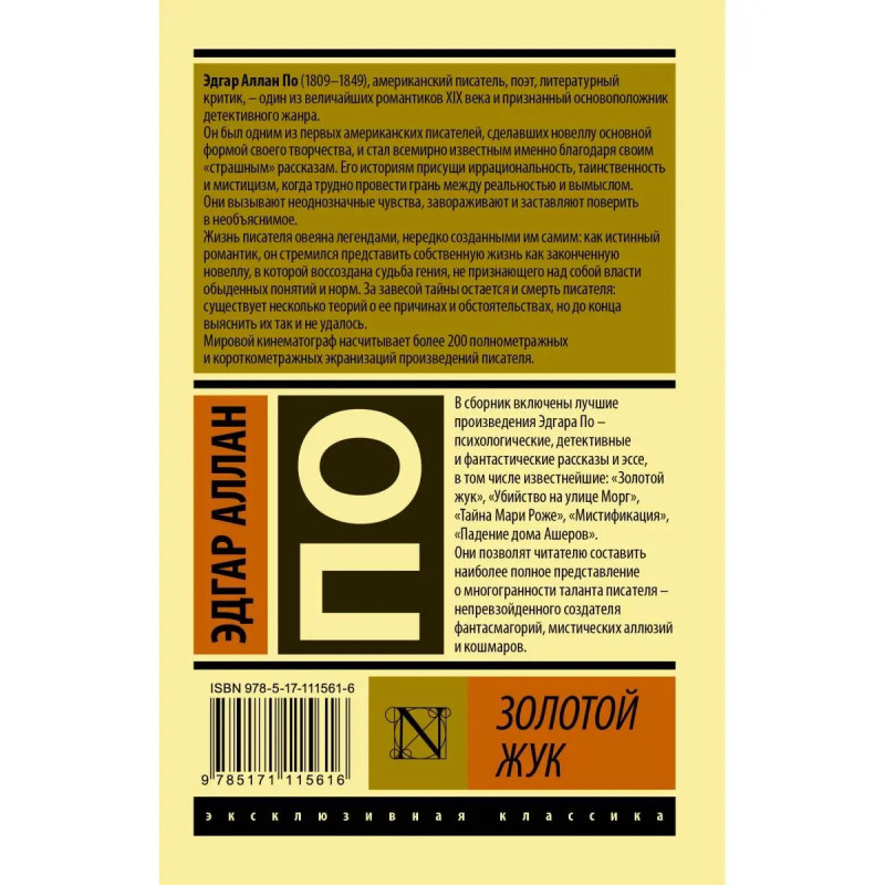 В сборник включены лучшие произведения Эдгара По психологические, детективные и фантастические рассказы и эссе, в том числе известнейшие: "Золотой жук", "Убийство на улице Морг", "Тайна Мари Роже", "Мистификация", "Падение дома Ашеров". Они позволяют читателю составить наиболее полное представление о многогранности таланта писателя непревзойденного создателя фантасмагорий, мистических аллюзий и кошмаров.