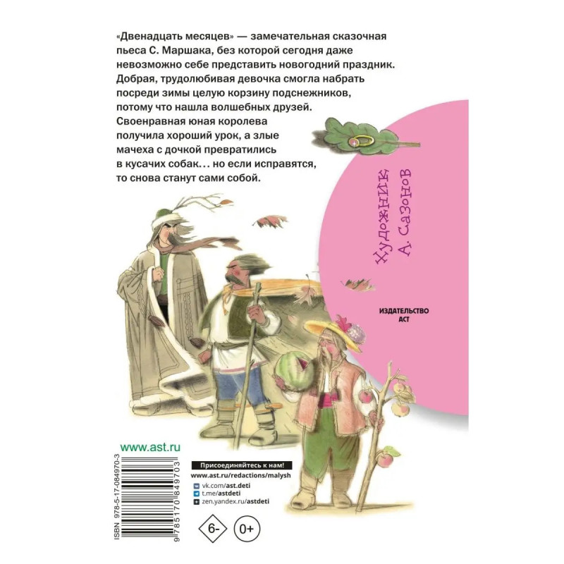 Двенадцать месяцев - замечательная сказочная пьеса С. Маршака. Злая мачеха отправила добрую, трудолюбивую падчерицу зимой в лес, на верную гибель, за подснежниками для королевы. Но произошло чудо - все двенадцать месяцев собрались вместе, чтобы помочь девочке, и среди холодной зимы ненадолго наступила весна. Что же будет с мачехой, её злой дочкой, своенравной королевой, когда они захотят, чтобы и для них месяцы сделали то же самое? Об этом юные читатели узнают в конце доброй сказки из этой книжки с яркими цветными иллюстрациями. Для младшего школьного возраста.